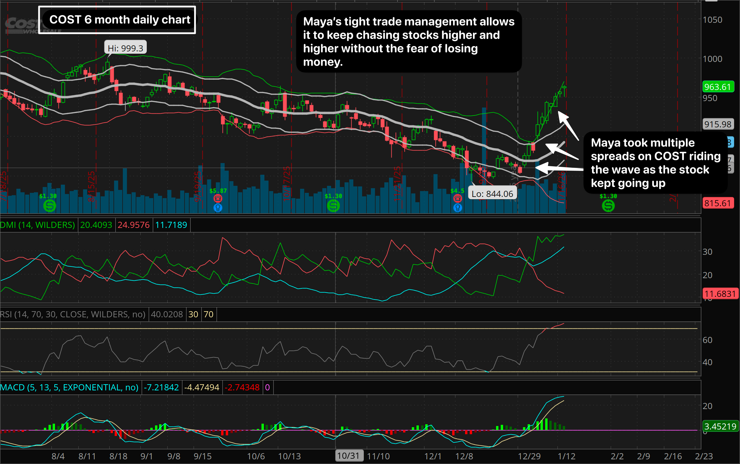 Most traders wait until they hit a 50% stop loss to admit defeat. Maya doesn't. She has 9 different exit rules that trigger before the pain gets too deep. This approach means that when a losing streak hits, the losses are small and manageable.